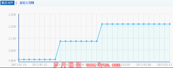 过去的版本,数据表的显示方式是在设置的时间段内,每一天都有标点的。而改版后,数据表只标点了外链数量发生改变的日期,让数据表看起来更加简洁,而且可以更加直观的分析外链的变化情况。看看过去和现在的版本差别。注意:上下图的域名不一样,下面是http://www.gscpp.net这个网站,所以数据也是不一样的,不过可以作为一个参考之用。