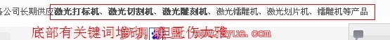 该站是典型的双导航结构,既双导航结构。笔者观察其关键词密度与位置,发现密度无问题,就是网站底部堆积了若干个关键词,用strong加粗并链接向了首页。一般而言,底部堆砌几个关键词并不会受到惩罚,但笔者还是建议其删掉几个次要的词。笔者查看其网站源代码,也无滥用H、strong与b等权重标签。
