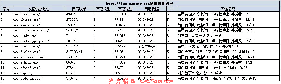 交换友情链接一定要选择相关性的网站,先看网站状态,连接是不是很多,资源是不是坚持更新,再看搜索引擎收录,快照是不是更新及时,然后再看PR,然后是其他的。当然这些基础信息完全可以用第三方工具来实现,比如chinaz的友链检测和站长帮手的友链检测。