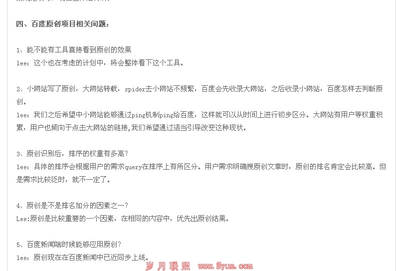 我认为各大站长首先应该考虑的就是百度之前就提过的一个主题,那就是百度这次活动提到的“原创项目”,这个项目就是判断原创文章,具体怎么判断原创,这块百度还在进一步完善,有的已经在实施了,我相信大家也注意了,是原创的话,会在左下角显示"原创文章",我觉得这个政策的出台对于很多喜欢写原创文章的站长是一件极大的好事,因为搜索引擎上面太多雷同的文章,连百度都不知道到底哪个是原创。所以这次这个项目,我们站长是应该看好的,杜绝抄袭,回归SEO原创。