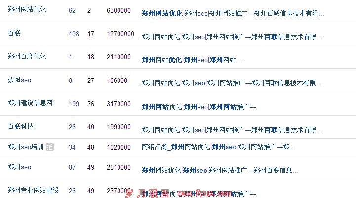 上图可以显示出在早上的时候,我站的核心关键词——郑州网站优化是排在排毒第二位的,其余又指出的关键词,也均有排名,网站排名一切正常,此时网站的情况是打不开:截止发文章的时候网站打开了但排名变化了了,如下: