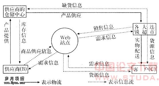 配送流程分析:连锁超市配送实现原理 传统功能的超市一方面继续发挥其销售功能,并与其消费者之间建立“B to C”商务模式。另一方面在电子商务“第三方物流”的供应链环节上充当委托代理人,接受供应商或生产商的委托,承担为消费者货物配送的功能,并可发展连锁超市,就近完成配送。供应商与超市之间建立“多对多”的关联,即一个供应商与多家超市的联系和多个供应商与一家超市的联系。该系统的整体模式是:“B to B to C”。