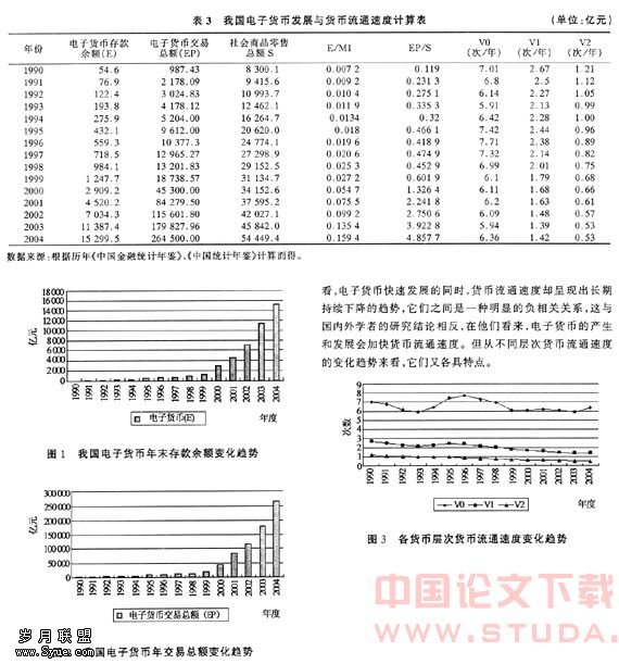 Survey of Electronic Money(1996),Implications for CentralBanks of the Development of Electronic Money(BIS,1996年10月),Risk Managementfor Electronic Banking and ElectronicMoney Activities(BCBS,1998年3月),BIS于2000年5月和2001年11月分别出版了题为Survey of Electronic MoneyDevelopments的两份报告,之后又于2004年4月出版了Sur-vey of Developments in Electronic Money and Internet and Mo-bile Payments。此外,国外学者在对电子货币研究的相关文献中也认为电子货币会对货币流通速度产生影响。Berentsen,Aleksander,Kyklos(1998),论述了电子货币产品的特征,并提出电子货币的使用将对货币需求、供给及货币流通速度产生影响;Aleksander Berentsen(2002)讨论了电子货币对货币需求及其过程、货币流通速度、准备金需求、中央银行货币控制权及货币政策传导机制的影响;JamesA.Dorn(1996)认为,由于电子货币的存在及其对货币流通速度的影响,降低了中央银行控制基础货币的能力;SusanM.Sullivan(2002)认为,随着电子货币的广泛使用,将限制中央银行货币供给的控制能力、使货币流通速度加快、铸币税收入减少、货币乘数发生变化等。