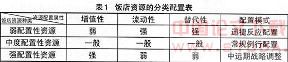 如表1所示,基础性的弱配置性资源流动性强,饭店需要对资源的变化做出迅速的反应和调整,其配置手法是迅捷反映型的配置模式。