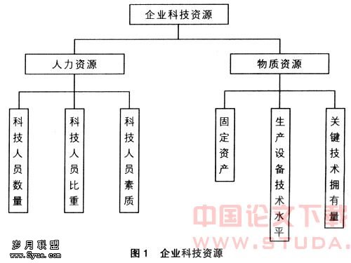 如图1所示,企业科技资源主要包括人力资源和物质资源。企业内部具有的科技资源是企业科技竞争强有力的后盾,也是科技竞争的潜力所在。