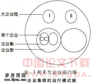 从图1可知,两个或两个以上的独立企业可以构成企业集,两个或两个以上的企业集可构成企业群,两个或两个以上的企业群可构成企业网,而在每个企业集群内部又可以形成企业运行网,而且企业运行网可以重叠,也可以部分重叠,既可以来自同一集群,又可以来自不同集群。所有的成员企业都有自己的企业运行网,这种企业集群的运行网具有很大的灵活性和环境适应性。一旦外界环境发生变化,企业马上就可以组成一个新的合作运行网。