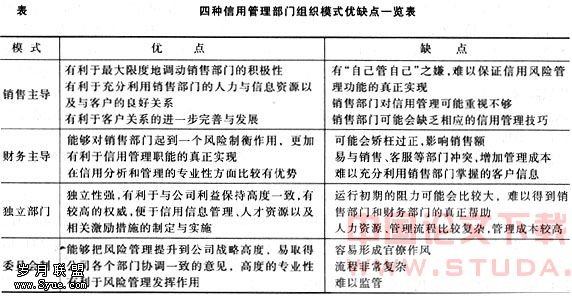 二、企业现行主要信用管理的组织模式的述评
