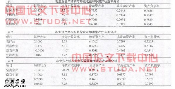 关键词:资产结构;企业效益;每股收益