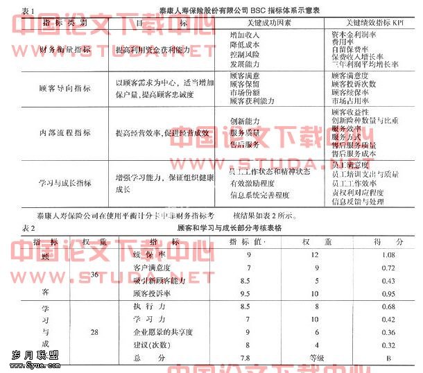 在这里仅引用泰康人寿保险公司在使用平衡计分卡中的成功和创新案例。泰康人寿保险股份有限公司在实施平衡计分卡时,充分考虑自身的经营特点,研究自己的内部和外部的环境,以战略为导向。