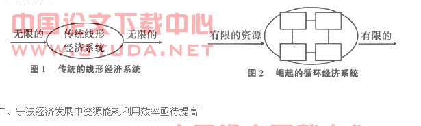 经济的发展有两种不同的选择(图1和图2):如果沿袭传统工业经济强物质化的线形经济发展模式(图1),经济快速增长的同时无疑要付出较高的资源环境代价;相反,如果采用当今减物质化的循环经济发展模式(图2),就有可能用较小的资源环境代价来赢得较好的经济增长。