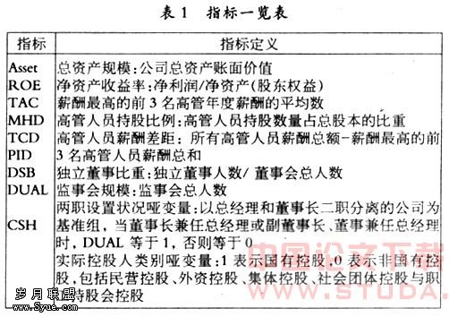 此外,公司治理结构中相关因素也在较大程度上对企业绩效、高管薪酬具有一定的影响。因此引入了4个指标作为控制变量:独立董事比重(PID)、监事会规模(DSB)、董事长与总经理两职设置状况(DUAL)、公司实际控股人类别(CSH),并提出如下2个假设:
