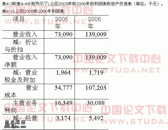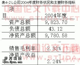 表4-1和表4-2分别列示了L公司2004年度的利润表(单位:元)与主要财务指标(单位:万元)。