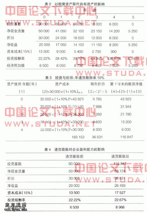从表4中可看出:经历了4年的通货膨胀后,企业的净收益和投资报酬率分别为26 493元和22.67%,均超过通货膨胀前的相应指标,盈利能力似乎显著提高了。然而,这样的报告显然没有任何实际意义。