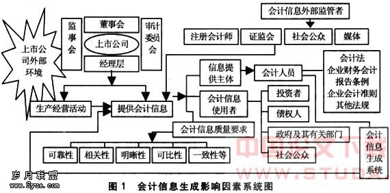 会计信息的生成由多个环节组成,会计信息生成影响因素的复杂性决定,任何一个因素发生变化都有可能导致企业产生提供虚假财务报告的动机,由此作用于会计人员,导致会计人员实施造假行为的发生。其信息的生成过程见图1。