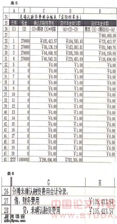 三、采用实际利率法分摊未确认融资费用