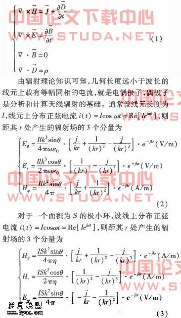 由公式(2)、()3可以看出?偶极子所载信号幅度越大?频率越高;功率越大?辐射场强越强;信号波形越尖锐?其频谱越宽;高频分量越丰富?其辐射场强越强。