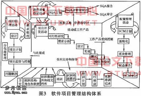 国际标准化组织的质量管理标准IS09000与CMM均可作为软件企业的过程改善框架。CMM仅仅适用于软件行业。而IS09000的适应面更广,实际上IS09000:2000版标准和CMM遵循共同的管理思想,IS09000:2000版(ISO9001)标准已经彻底解决了94版的制造业痕迹较重、标准按要素描述难于在软件行业实施的问题。