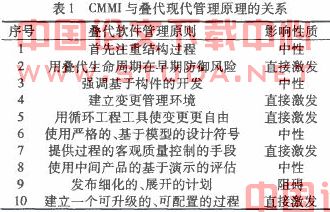根据对软件开发项目一线的多数工程师和项目经理的调查分析,我们知道CMM对现代原理几乎没什么影响,甚至有些现代原理实际上是和CMM关键过程域相冲突的。基于对产业默认实践的观察和分析,CMMI和现代管理原理关系十分密切,激发了半数的叠代软件管理原则,如表1所示。