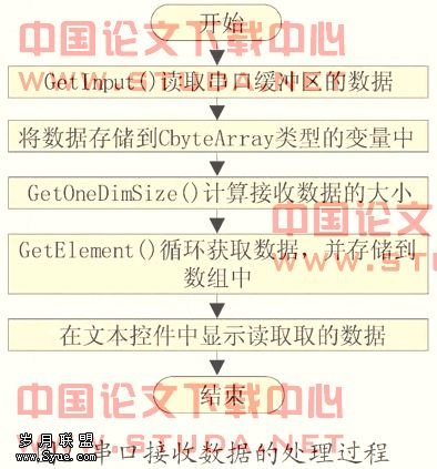 无论是在PC机读取上传数据时还是在PC机发送下行命令时,我们都习惯于使用字符串的形式。字符串可以用BSTR表示,但是所有的BSTR都是包含宽字符,WinNT支持宽字符,而Win95并不支持。为解决上述问题,我们在实际应用中使用CbyteArray。串口接收数据的处理流程如图2所示。