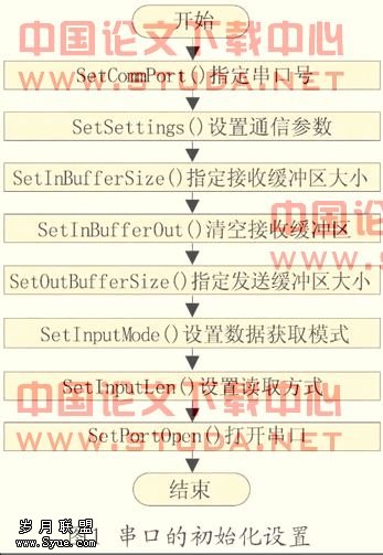 串口的初始化主要是通过串口的属性设置相应的参数。利用成员对象m_Com初始化串口参数的主要流程如图1所示。