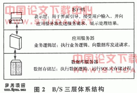 B/S三层体系结构采用三层客户机/服务器结构,在数据管理层(Server)和用户界面层(Client)增加了一层结构,称为中间件(Middleware),使整个体系结构成为三层。三层结构是伴随着中间件技术的成熟而兴起的,核心概念是利用中间件将应用分为表示层、业务逻辑层和数据存储层三个不同的处理层次,如图2所示。?