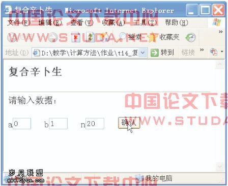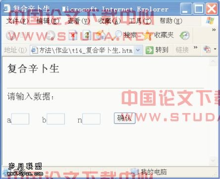 (3) 运行该程序只需要双击该文件图标就可以在IE浏览器环境下运行,在指定的文本框中输入符合要求的数据点击确定就可以得到计算的结果,如图3和图4所示。