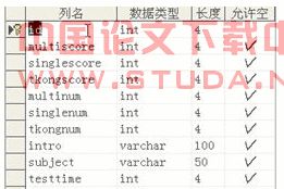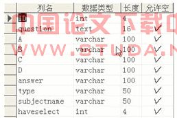3)试题信息表结构(question),如图2-5: