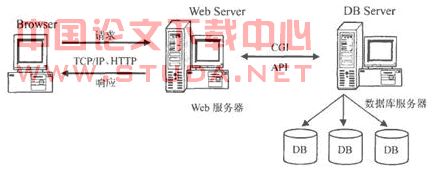 随着网络规模的日益扩大,应用程序的复杂程度不断提高,传统的数据库应用架构已经不能胜任。为了充分利用网络资源,越来越多的信息需要在 www(WoridWideWeb)上发布,实现信息最大程度的共享。Browser/Serve结构伴随着Intemet的发展而很快地发展起来。Browser/Serve体系结构是一种三层结构,其三级结构组成如图2-2所示:
