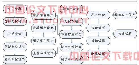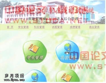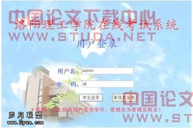 系统的主界面主要有考生、管理员入口,根据用户类型,分别进入考试和管理两个不同的页面。其最大的特点是开放性、方便性和灵活性。