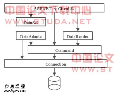ADO.NET对象模型中有五个主要的组件,分别是Connection对象、Command对象、DataAdapter、DataSet以及DataReader。这些组件中负责建立联机和数据操作的部分我们称为数据操作组件(Managed Providers)分别由Connection对象、Command对象、DataAdapter对象以及DataReader对象所组成。数据操作组件最主要是当作DataSet对象以及数据源之间的桥梁,负责将数据源中的数据取出后植入DataSet对象中,以及将数据存回数据源的工作。
