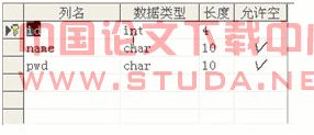 2)学生信息表结构(student) ,如图2-4: