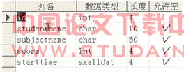 5)考生成绩表结构(score),如图2-7所示: