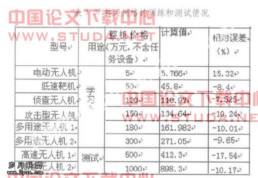 三、某型号无人机成本估算的BP模型