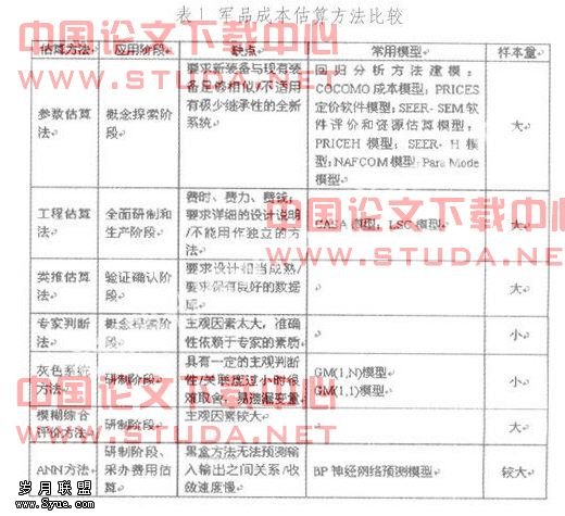 一、我国常用的军品成本估算方法