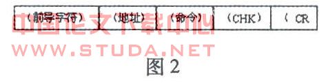 ADAM4520模块已经帮我们把RS232的字符串信号转换成RS485的信号后,此信号就可以在RS485上传送了。而一个串行通讯进行之前必须先就传输的状态条件进行设置,ADAM4000系列的分布式模块所使用的校验位检查方式是None,数据位长度是8,停止位长度是1,模块的速度可以有多种选择,最高可以达到115200bps。分布式模块的命令格式被分成送出与响应两个部分,其中送出部分由机下达命令给分布式模块,由5个片段组成,如图2。