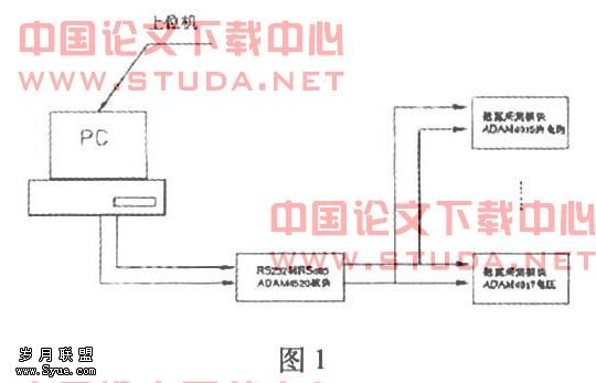 本系统采用一台PC作为上位机,采集系统通过若干块研华Adam4000系列I/O模块完成,系统原理图如图1所示。