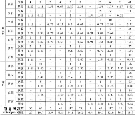 总之,通过对整个清代陕南自然灾害的统计分析可知: