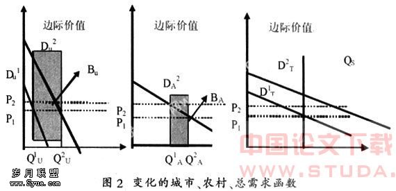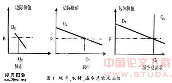DU—表示城市的需求函数DA—表示农村的需求函数DT—表示城乡总需求函数。