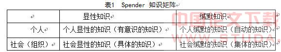 所谓知识是一种有价值的智能结晶,可以通过信息、经验心得、抽象的观念、标准作业程序、系统化的文件、具体的技术等方式呈现。知识呈现的形式虽然有很多种,但在本质上都必须具备创造附加价值的效果,否则就不能被称为知识。因此引进、学习、扩散、创新知识,一直都是人类社会的特征,也是驱动社会进步的最主要力量。根据知识能否清晰地表述和有效的转移,可以把知识资源可分为显性知识(explicit knowledge)和缄默知识(tacit knowledge)。显性知识又称编码化知识(codified knowledge),是可以比较容易地整理、编码,具有单一的含义和内容。缄默知识是很难编码、隐含的知识,它往往被偶然发现,并且这种知识不能和个人、社会及地域背景轻易地分开。