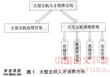 人才培养必须面向国家建设和社会发展的需要,必须要结合行业发展的总体趋势。所以在制定大型主机人才培养的主要方向时,我校积极与国内及国际的大型主机开发及应用企业合作,例如IBM、花旗软件、武汉钢铁集团、中国银行及中国农业银行等。在课程设置、人才培养方向及目标方面充分征求这些用人企业的意见,并结合高校现状,制定了切实可行的大型主机人才培养方向,如图1所示。