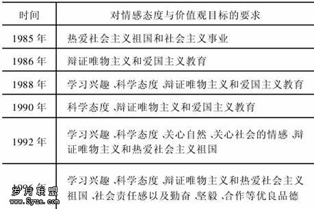 表3 20世纪80年代~90年代中期我国课标中对情感态度与价值观目标的要求