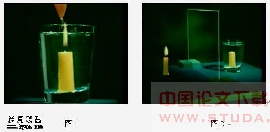 利用信息技术所具有的对图、文、声、像等多媒体信息的综合处理能力,通过将多种媒体信息有机地融为一体,实现有声、可视、形象生动的表达效果,进而为物理探究教学创设有助于学生发现问题的良好学习情境,激发学生的探究欲望。例如,在《平面镜成像》的引入环节可设计这样的教学情境:播放一段视频(如图1),展示蜡烛水浇不灭的奇妙情景,出人意料的情景引起学生的认知冲突,从而激发学生的好奇心与学习的积极性。然后,再播放视频(如图2)展示真相,原来烛焰水浇不灭,呈现水火相容景象的奥秘是一块玻璃板。一块普通的玻璃板呈现的奇妙景象,极大地激发了学生的探究欲望。