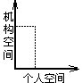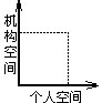 从社会学的角度来看,课程领导和课程管理也是有区别的。社会学认为一个社会系统必然涉及组织和个人这两种现象。“在这种系统中的社会行为,可以从两种主要元素的功能加以了解,那就是规范空间(nomothetic or normative dimension)和理想空间(idiographic or individual dimension)。前者包括机构、角色和期望;后者则由个人、人格和需要所组成;前者又可称为机构空间,后者为个人空间。”[6]根据对机构空间和个人空间的偏重,领导类型可分为:规范型、理想型及执行型(见图1、图2、图3)。规范型领导的特征在于强调组织目标的实现,注重规章,注重集权,轻视个人自由,完全以是否达成组织目标为衡量机构效能的准绳。理想型领导的特征是强调组织成员的个性,少用规章,注重分权,并珍视与部属的高度个人主义的关系,旨在使部属随时保持快乐与满足。第三种类型的领导不但强调组织目标的实现,而且也藉此以满足个人的需要。[6](16)