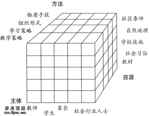教师在考虑教学内容的过程中,不仅同“主体”维度中的学生、家长和社会行业人士对话,而且要仔细考证“资源维”与“方法维”中的各要素,寻找可能的交合“体”与“面”,改变教材内容特征,创生适应特定教学情境、切合学生学习利益最大化的教学内容。