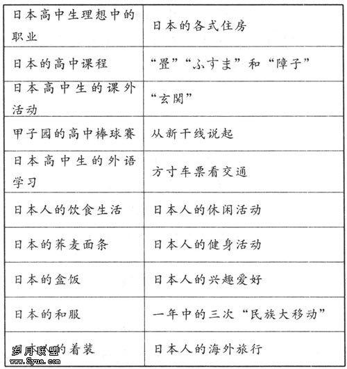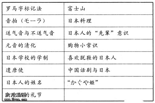 (一)用汉语以专栏的形式介绍日本的风土人情、生活习惯等异文化背景知识