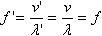 (b)此时波浪相对船的速度v′=v,波速是波的传播速度,在垂直其传播方向上观察,观察者的运动不影响结果,故λ′=λ,波浪相对船的频率
