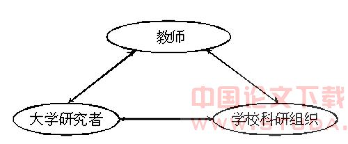 正如前文所述,在合作研究中我们希望教师、学校、学者各司其职,成为这三角关系中不可缺少的一部分(参见图2)。建立这种三角关系旨在更好地相互支持,并能够相互制约。应该明确三方的权利和义务。义务更多地表现为相互支持的力量,权利则能够更好地制约另两方的发展。要使三角关系正常运转,建立一定的合作机制必不可少。例如要保证沟通渠道的畅通,学者和教师可以通过互联网保持密切的交流;学校定期组织教师进行研究交流,关注教师的研究进程,并将研究的成果运用于学校的发展建设;学者能够随时进入学校进行观察,并提出建设性意见;等等。此外,建立平等民主的合作文化是合作研究的一个重要的方面。这种文化对于教师专业自主意识的培养,教师专业合作团体的形成大有裨益。一旦这种文化真正形成,教师即具备了专业发展的保障,在学者撤离学校之后,他们仍能够继续不断进步,追求各自专业发展的更高境界。