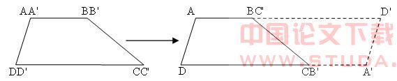 两个完全一样(全等)的梯形ABCD和A'B'C'D',重叠在一起,经过怎样的几何变换(只允许平移、旋转),可以拼成一个平行四边形?