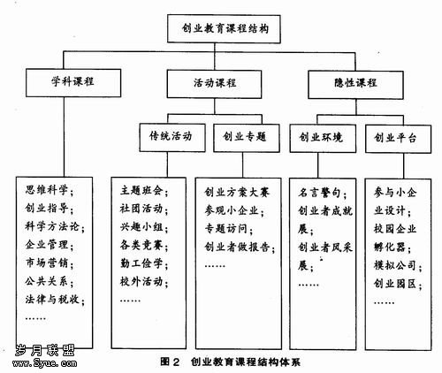 1.学科课程。将课程结构体系的建立从以培养专业技能为主,转变到重视学生全面素质提高和毕业后的劳动需要为主。在课程结构上采用四段式结构,即基础知识教育、职业基础理论教育、职业专业知识教育、创业教育。在创业教育阶段开设思维、创业指导;科学方法论;企业管理;市场营销;公共关系;与税收等课程,使创业教育成为所有教育课程计划的组成部分,使毕业生获取较高的自我创业能力。 2.活动课程。在高职院校广泛开展的各种校园活动中,把创业教育的内容和要求结合进去,如班会、社团活动、兴趣小组、各类竞赛、勤工俭学等;同时根据创业教育的课程目标和任务设计专门的教育活动,开展创业专题活动,如创业方案大赛、参观小企业、专题访问、请创业者做报告等。这些活动都是高职学生所喜闻乐见的,参与的积极性比较高,学生在活动中受到了创业教育,同时丰富了学生的校园生活。3.隐性课程。突出创业氛围的营造和创业平台的搭建,在校园内布置激励学生投身创业的名言警句,专题展出创业成功者的风采,尤其是本校毕业生的创业成就,为学生营造一种创业教育的氛围,通过环境氛围来培养学生的创业意识和品质。除此之外,还要为学生创造培养创业能力的物质条件。如在校园内设立“创业园区”,学生可以提出项目申请,方案获通过后的学生根据自己的能力开办一些校内公司或在校内经商等。或者由学校组织开办模拟公司,这种将学生实践能力和专业技能的培养与创业相结合的方法,其运作程序符合企业行为,为学生提供了体验创业的平台。
