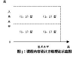 参照管理方格理论,在如何对待课程内容设计的技术水平与人本水平的态度上,可以将课程内容设计划分为四个区间。
